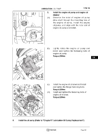 6. Install the oil sump (Refer to "Chapter17 Lubrication-Oil Sump,Replacement")