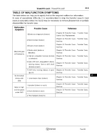 TABLE OF MALFUNCTION SYMPTOMS