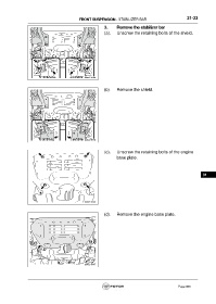 FRONT SUSPENSION - STABILIZER BAR 31-23 3. Remove the stabilizer bar (a). Unscrew the retaining bolts of the shield. (b). Remove the shield. (c). Unscrew the retaining bolts of the engine base plate. 31 (d). Remove the engine base plate. Page 983