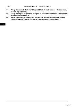 65 . Fill up the engine oil. (Refer to "Chapter 05 Vehicle maintenance - Replacement,