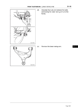 FRONT SUSPENSION - LOWER SWING ARM 31-19 (d) Unscrew the nuts and remove the bolts connecting the lower swing arm and the frame. (e) Remove the lower swing arm. 31 Page 1615