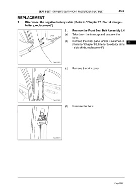 2 . Remove the Front Seat Belt Assembly LH