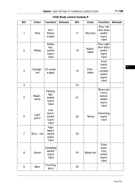 WIRING - DISCRIPTION OF HARNESS CONNECTORS 71-189