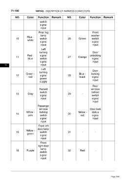 71-190 WIRING - DISCRIPTION OF HARNESS CONNECTORS
