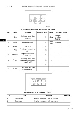 71-210 WIRING - DISCRIPTION OF HARNESS CONNECTORS
