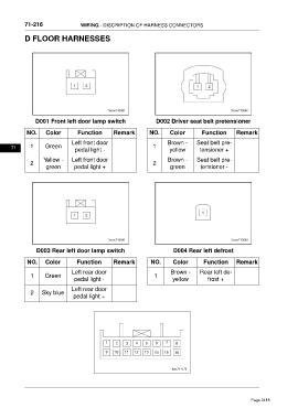 71-216 WIRING - DISCRIPTION OF HARNESS CONNECTORS
