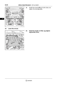 05-54 VEHICLE MAINTENNANCE - REPLACEMENT (b) Install the small baffles on both sides and tighten the retaining bolts. 05 24 . Lower the vehicle. 25 . Install the engine oil filler cap, tighten engine trim cover.
