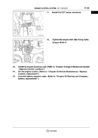 15 . Connect battery negative cable. (Refer to "Chapter 20 Starting and Charging -