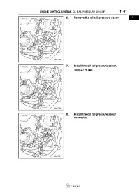 ENGINE CONTROL SYSTEM - OIL RAIL PRESSURE SENSOR 11-41 6 . Remove the oil rail pressure senor 11 7 . Install the oil rail pressure senor. Torque: 70 Nm 8 . Install the oil rail pressure senor connector.