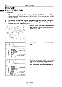 • When removing the fuel tank, drain the fuel tank by the following means, if there