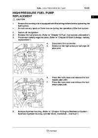 2 . Release the fuel pressure. (Refer to "Chapter 12 Fuel - fuel system, precaution")