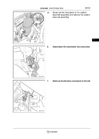 COOLING - ELECTRONIC FAN 17-11 (e) Screw out the fixing bolts of the coolant reservoir assembly, and remove the coolant reservoir assembly. 17 6 . Disconnect the electronic fan connector. 7 . Remove the harness connector at the left.