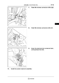 COOLING - ELECTRONIC FAN 17-13 11 . Reset the harness connector at the right. 17 12 . Reset the harness connector at the left. 13 . Insert the electronic fan connector back , until you hear the click. 14 . Install the coolant reservoir assembly: