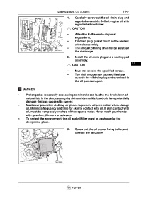• To protect the environment, the oil and oil filter must be destroyed at the