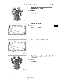 8 . Tighten the oil tray fixing bolts and install