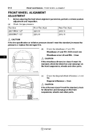1 . Before adjusting the front wheel alignment parameters, perform a vehicle posture