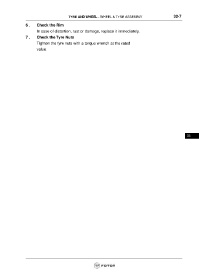 TYRE AND WHEEL - WHEEL & TYRE ASSEMBLY 33-7 6 . Check the Rim In case of distortion, rust or damage, replace it immediately. 7 . Check the Tyre Nuts Tighten the tyre nuts with a torque wrench at the rated value. 33