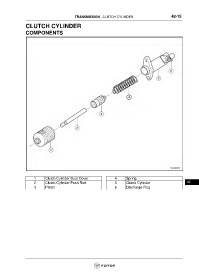 TRANSMISSION - CLUTCH CYLINDER 42-15 CLUTCH CYLINDER COMPONENTS 1 Clutch Cylinder Dust Cover 4 Spring 2 Clutch Cylinder Push Rod 5 Clutch Cylinder 42 3 Piston 6 Discharge Plug
