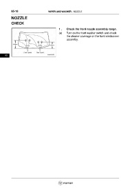 65-18 WIPER AND WASHER - NOZZLE NOZZLE CHECK 1 . Check the front nozzle assembly range. (a) Turn on the front washer switch and check the cleaner coverage on the front windscreen assembly. 65