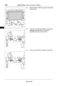(d) Screw off these 4 DVD & navigation assembly