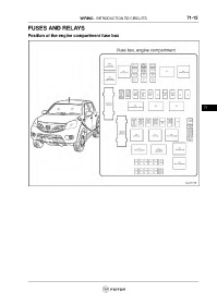 WIRING - INTRODUCTION TO CIRCUITS 71-15 FUSES AND RELAYS Position of the engine compartment fuse box 71