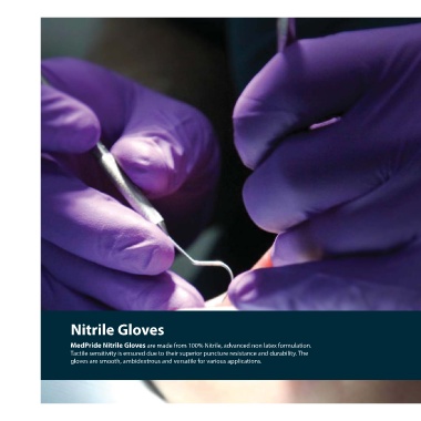 MedPride Nitrile Gloves are made from 100% Nitrile, advanced non latex formulation. MPR-50504 Medium 10/100/cs MPR-50554 Medium 10/200/cs