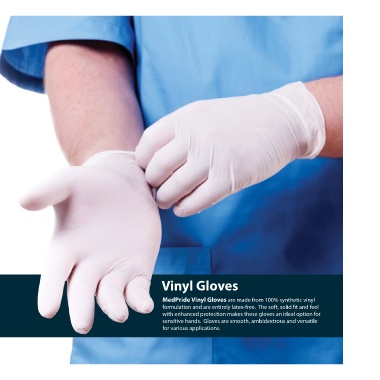 MedPride Vinyl Gloves are made from 100% synthetic vinyl dPride Vinyl Gloves are made from 100% synthetic vinyl