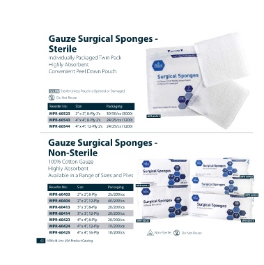 MPR-60543 4” x 4”, 8-Ply 2’s 24/25/cs (1200) Reorder No: Size Packaging