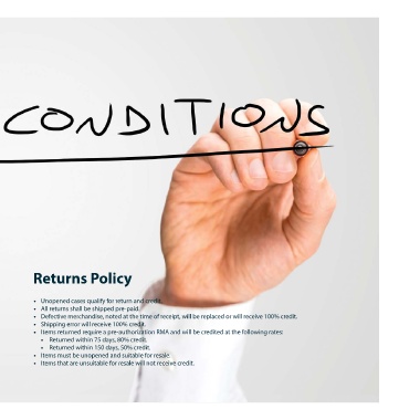 •  All orders require a predetermined minimum   •  Items returned require a pre-authorization RMA and will be credited at the following rates: