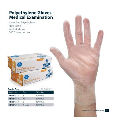 MedPride Powder-Free Polyethylene Examination Gloves are translucent (clear), biocompatible, non-sterile MPR-51513 S 10/300/cs