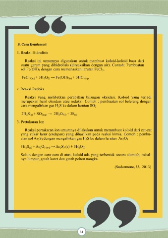 merupakan hasil oksidasi atau reduksi. Contoh : pembuatan sol belerang dengan
