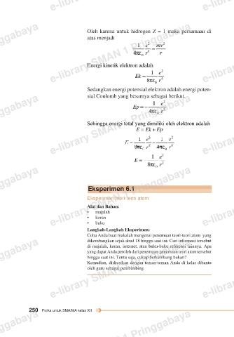 Sehingga energi total yang dimiliki oleh elektron adalah