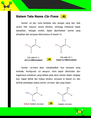 Isomer cis-trans akan menghasilkan dua senyawa yang