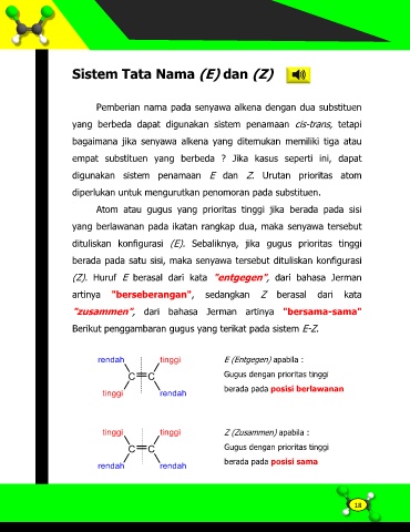 digunakan sistem penamaan E dan Z . Urutan prioritas atom