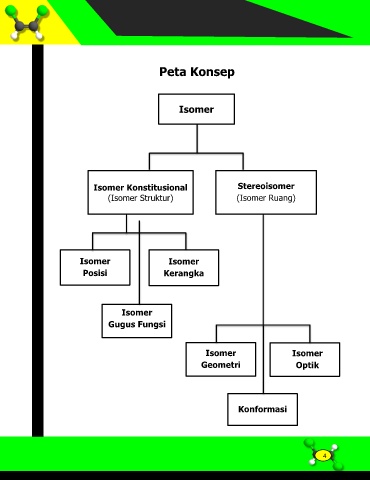 Peta Konsep Isomer Isomer Konstitusional Stereoisomer (Isomer Struktur) (Isomer Ruang) Isomer Isomer Posisi Kerangka Isomer Gugus Fungsi Isomer Isomer Geometri Optik Konformasi 4