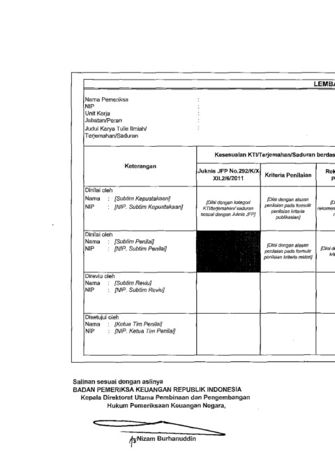 [NIP. Subtfm Kepustakaan] KTflterjemahenl saduran penilaian pada formulir