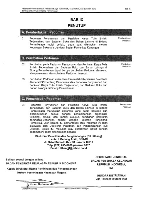 Pedoman Penyusunan dan Penilaian Karya Tulis IImiah, Terjemahan, dan Saduran Buku Sab IX