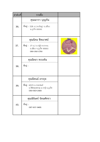 37. ที่อยู : 27 ม.2 ถ.ปฏัก ต.กะรน