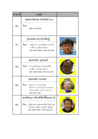 60. ที่อยู : 75/96 ม.6 ถ.เทพกระษัตรี (หลัง วค.)