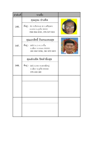 146. ที่อยู : 36 ซ.เชิงทะเล 16 ถ.ศรีสุนทร