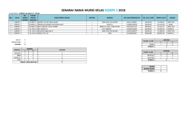 SENARAI NAMA MURID KELAS KSSRPK 5 2018