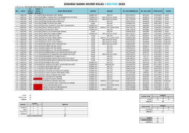 BIL. KELAS REKOD MASUK NAMA PENUH MURID JANTINA BANGSA NO. KAD PENGENALAN NO. SIJIL LAHIR TARIKH LAHIR AGAMA