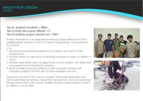 INNOVATION DESIGN This is a flagship course offered in the first semester to all 850+