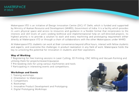 Makerspace IITD is an initiative of Design Innovation Centre (DIC) IIT Delhi, which is funded and supported