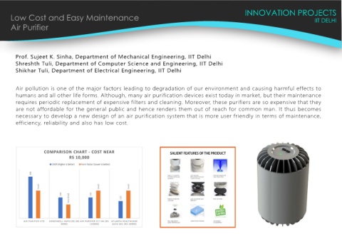 humans and all other life forms. Although, many air purification devices exist today in market, but their maintenance