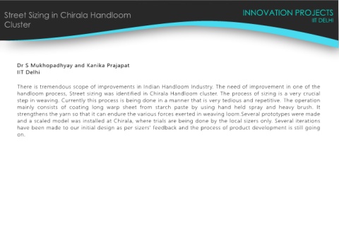 handloom process, Street sizing was identified in Chirala Handloom cluster. The process of sizing is a very crucial