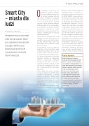 dzy innymi inteligentne rozwiązania dla miast. Nie ustają przy tym dyskusje, co to w zasadzie oznacza. Ogromne wątpliwości budzi określenie inteligent- ne miasto (smart city). Na ogół przyjmu- je się intuicyjnie, że chodzi o organizm zapewniający mieszkańcom wyższy komfort życia przy wykorzystaniu roz- maitych skomplikowanych rozwiązań teleinformatycznych.