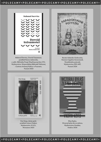 z cyklu: Biblioteka Poezji Współczesnej (tom 311), Wydawnictwo Wojewódzkiej Biblioteki Publicznej i Centrum Animacji Kultury w Poznaniu, Poznań 2024