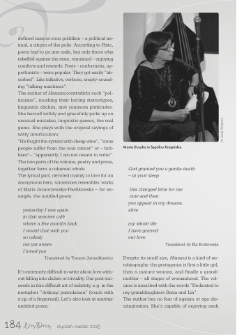 The lyrical part, devoted mainly to love for an anonymous hero, sometimes resembles works of Maria Jasnorzewska-Pawlikowska – for ex- ample, the untitled poem: