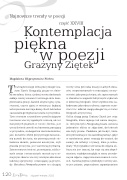 Od lat drugą pasją Grażyny Ziętek jest więc fotografia, która zajmuje tak ważne miejsce, że tom poetycki Fotografią pisane zawiera jedenaście ekfraz ze zdjęciami, do których one były pisane. Podobnie jak kiedyś, także dziś potrzebna jest niezawodna pamięć, gdyż w natchnieniu poeci wracają do wrażeń, do emocji, do refleksji i sytuacji, które je wzbu- dzały. W przypadku tworzenia do zdjęcia ek- frazy nie jest inaczej, bo staje się ona dopeł- nieniem, wydobyciem głębi ze sceny utrwalo- nej na zdjęciu, zagęszczeniem znaczeń i wra- żeń. Autorka poprzez podwójny twórczy akt, to jest pisanie, poprzedzone zapamiętaniem
